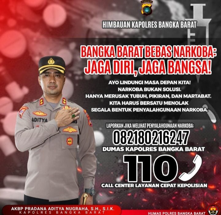 “Kami mengajak seluruh masyarakat Bangka Barat untuk bersatu menjaga lingkungan dari bahaya narkoba. Ini bukan hanya tugas kepolisian, tapi tugas kita bersama. Mari jaga diri, jaga keluarga, dan jaga bangsa dari ancaman narkoba,” tegas AKBP Pradana Aditya Nugraha.