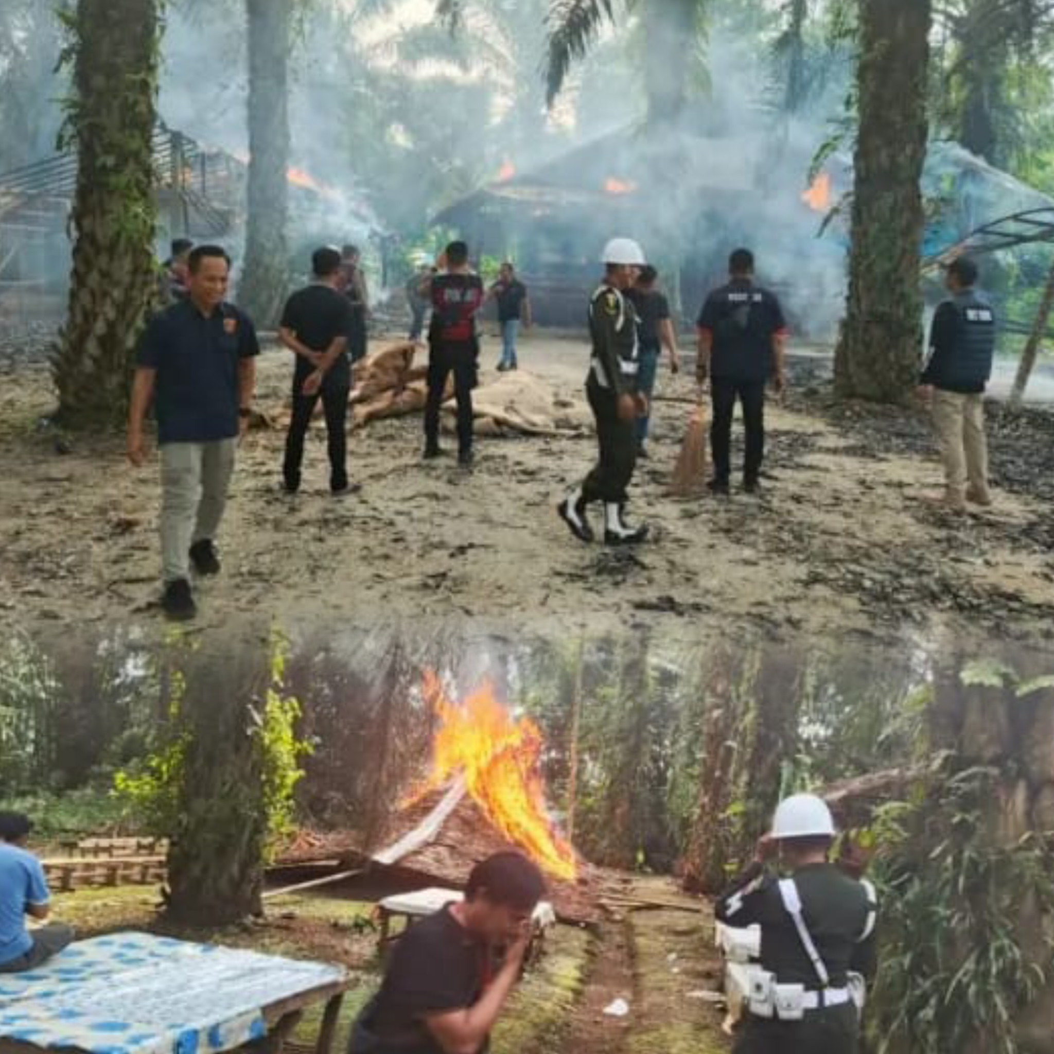Tak ingin kecolongan yang kesekian kalinya personil Gabungan langsung mengambil tindakan tegas,Memusnahkan seluruh Fasilitas dengan cara di bakar.