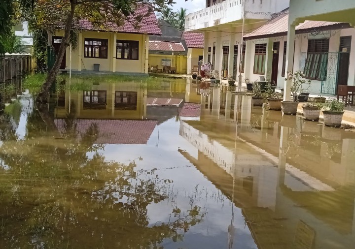 *Halaman Sekolah Tidak Memiliki Saluran Parit yang Memadai*