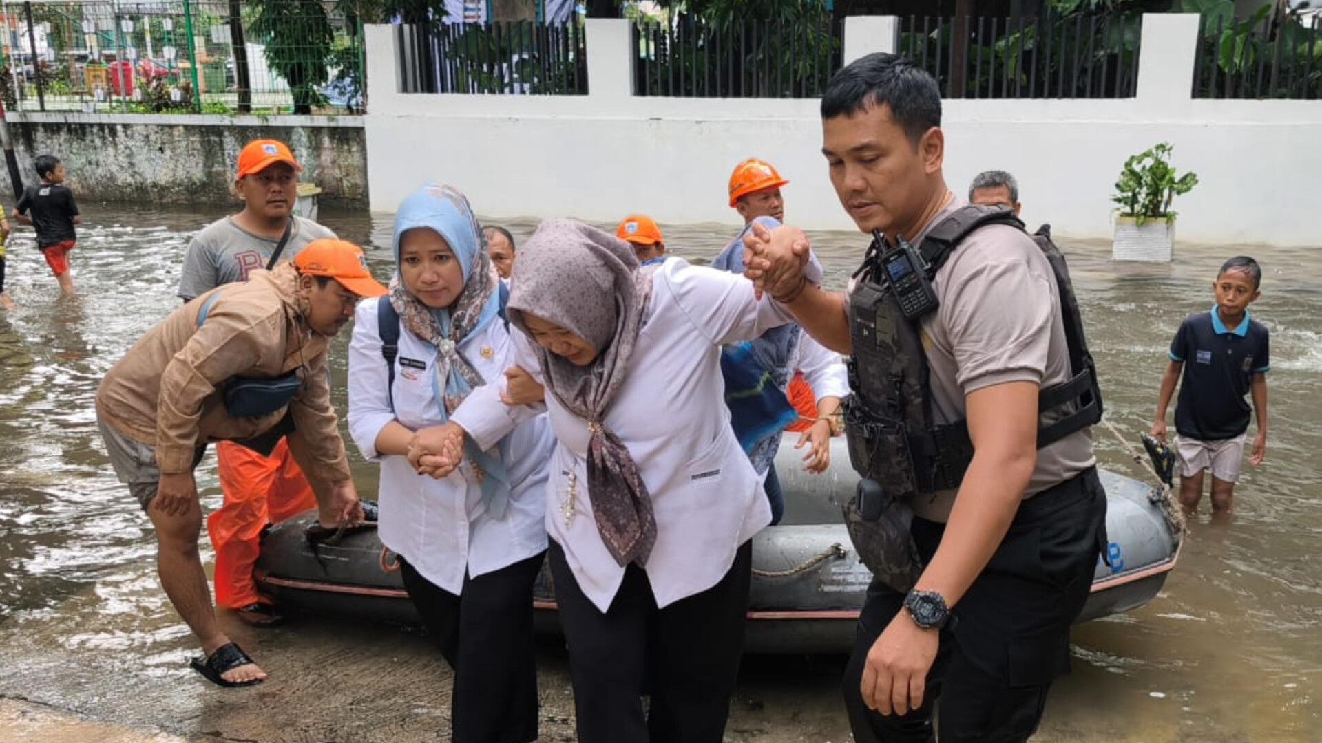 Warga tersebut diketahui bernama Nur Khasanah, seorang guru di Sanggar Kegiatan Belajar 04 Kelurahan Pademangan Timur. Ia mengalami pendarahan dan membutuhkan penanganan medis segera. Namun, akses menuju fasilitas kesehatan terhambat akibat genangan banjir yang merendam sejumlah ruas jalan.