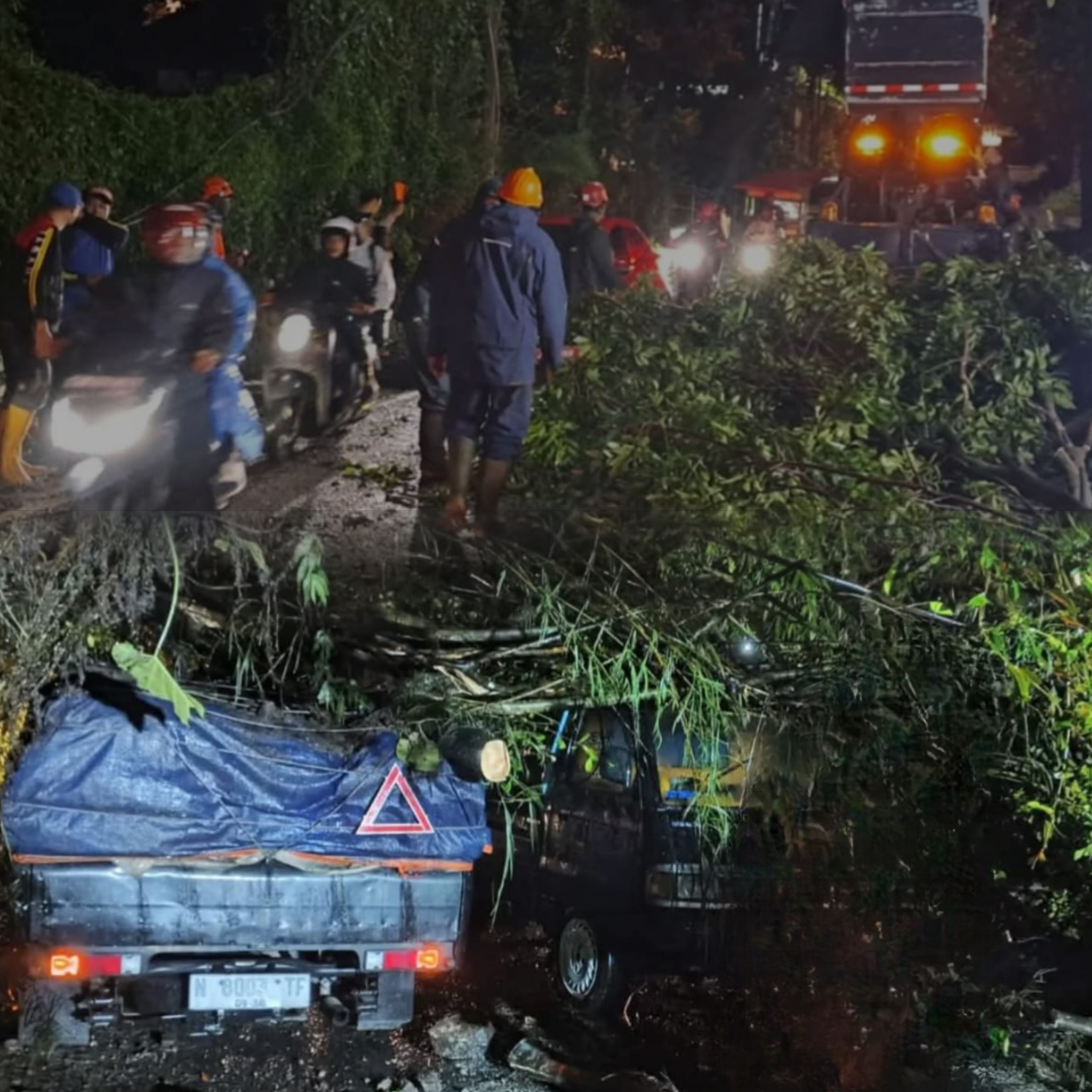 sidikpolisinews.id | Rabu (04/03/2026) – Kota Batu, Jawa Timur – Sebagai dampak cuaca ekstrem berupa hujan deras disertai angin kencang yang terjadi pada pukul 18.30 Waktu Indonesia Barat (WIB), sebanyak 31 pohon tumbang di sejumlah desa dan kelurahan di Kota Batu. Kejadian ini menyebabkan pemblokiran akses jalan, menimpa dua mobil pick-up, serta mengganggu jaringan listrik dan telekomunikasi di wilayah terdampak. Sebelumnya, Badan Meteorologi, Klimatologi, dan Geofisika (BMKG) telah mengeluarkan peringatan dini terkait cuaca ekstrem tersebut.