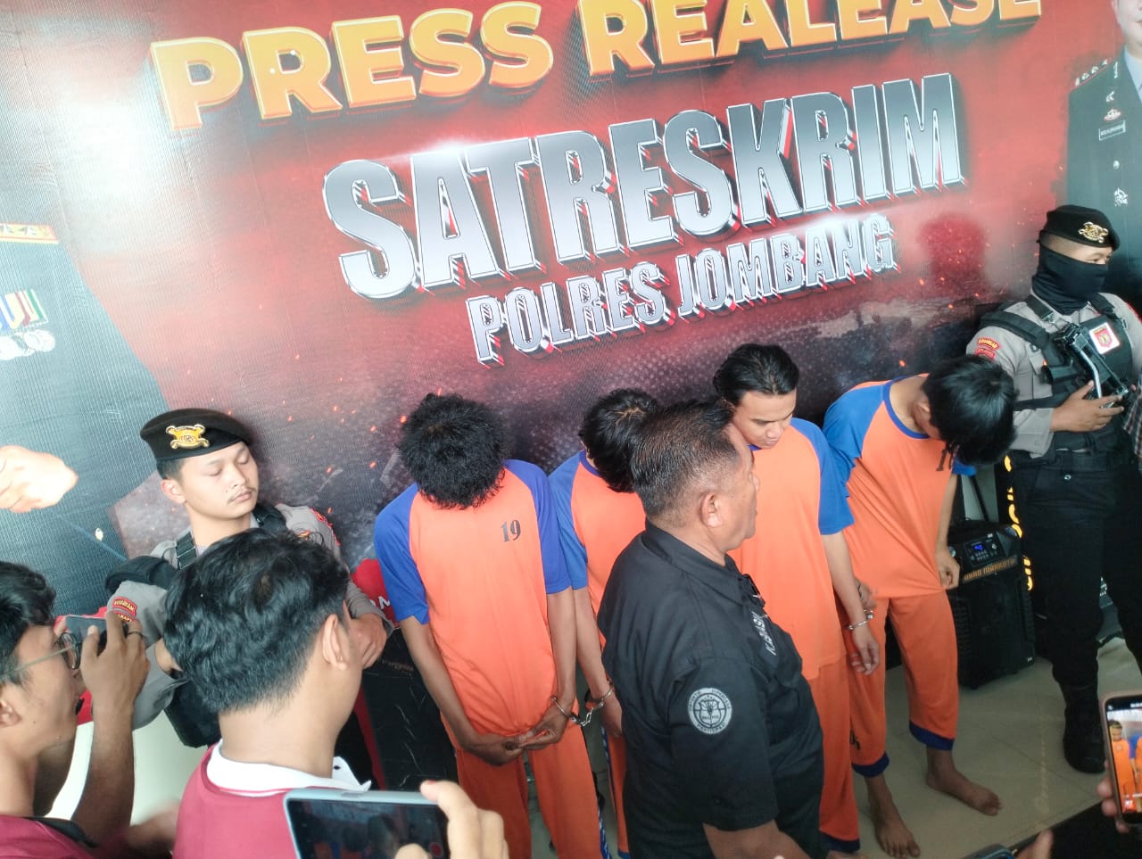 Polres Jombang menggelar konferensi pers dalam rangka pengukapan kasus tindak pidana pengeroyokan sebagaimana dimaksud dalam pasal 170 KUHP yang terjadi di jln Patimura, Kelurahan Sengon, Kabupaten Jombang.