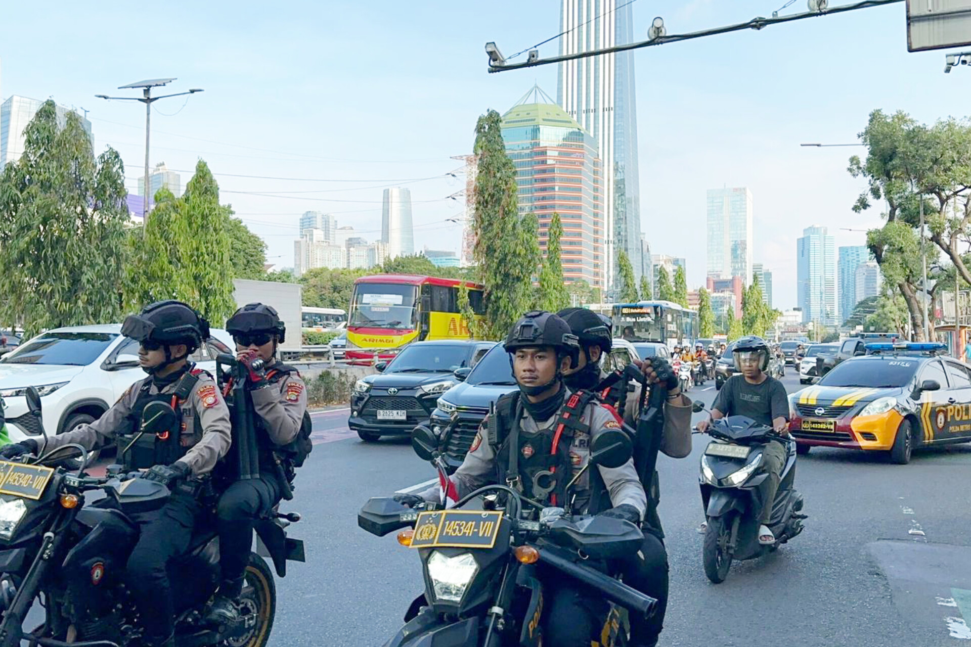 Polda Metro Jaya kembali menggelar patroli skala besar di ibu kota, Minggu (28/9/2025). Patroli dibagi ke dua wilayah, yakni wilayah 1 ke arah Jakarta Utara dan wilayah 2 ke arah Jakarta Selatan.
