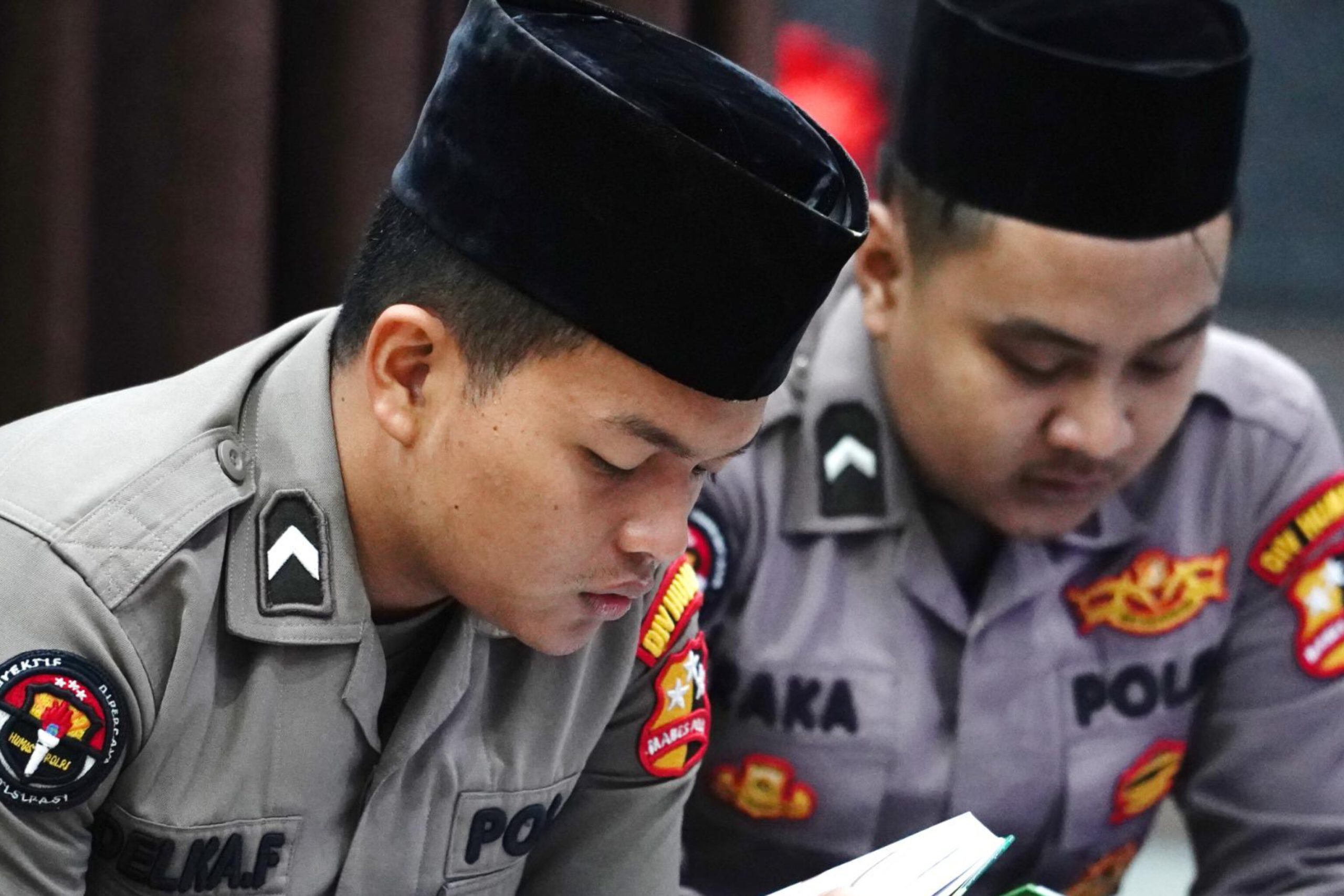 Suasana khidmat menyelimuti lantai tiga Gedung Divhumas Polri pada Jumat pagi (19/9/2025). Bertepatan dengan hari Jumat yang penuh keberkahan, personel Polri bersama para tahfidz lulusan Perguruan Tinggi Ilmu Al-Qur’an (PTIQ) Jakarta menggelar pengajian dan khataman Al-Qur’an. ‎