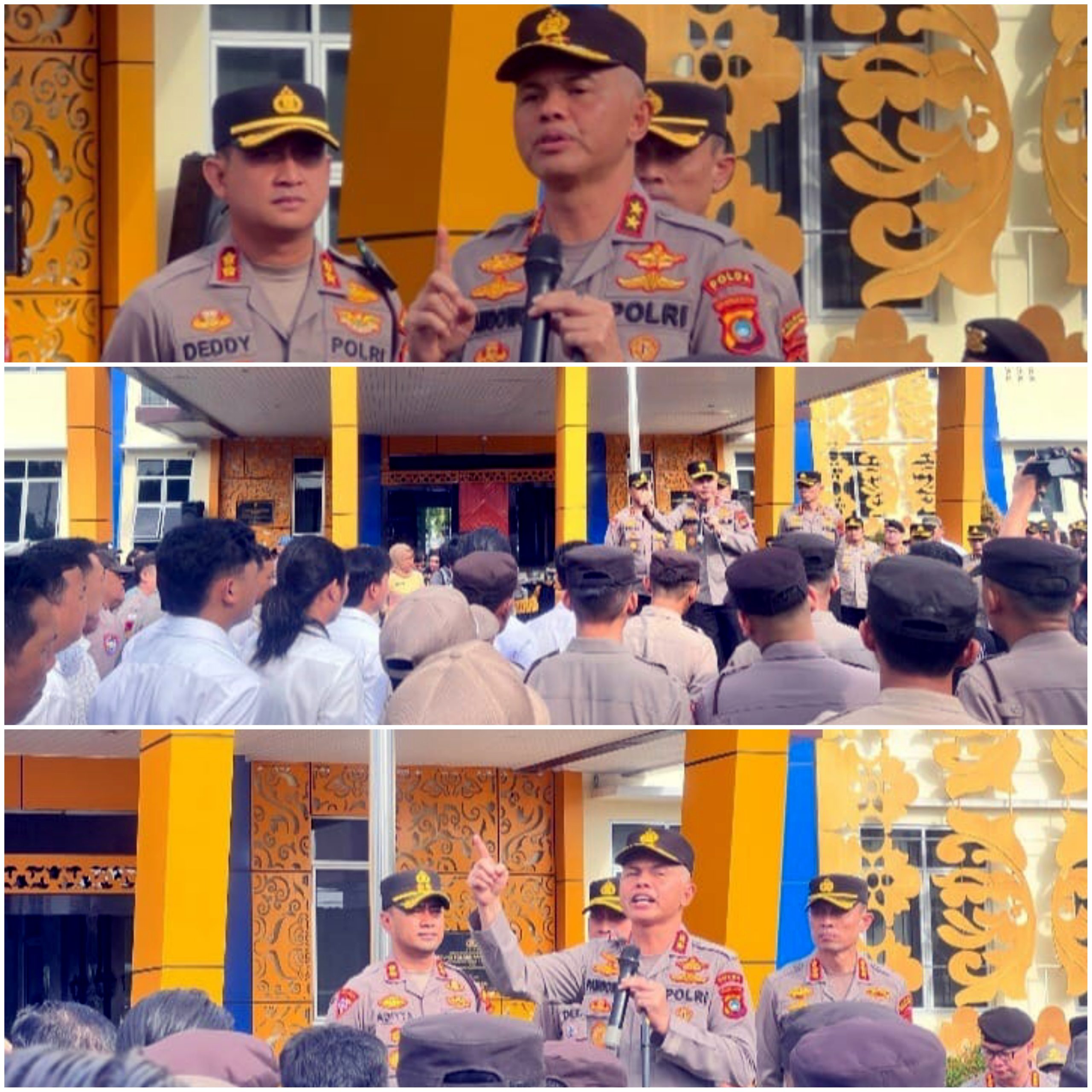 Kapolda Bangka Belitung Irjen Pol Hendro Pandowo menggelar apel gabungan yang dipusatkan di Halaman Mapolresta Pangkalpinang, Kamis (10/4/25) pagi.