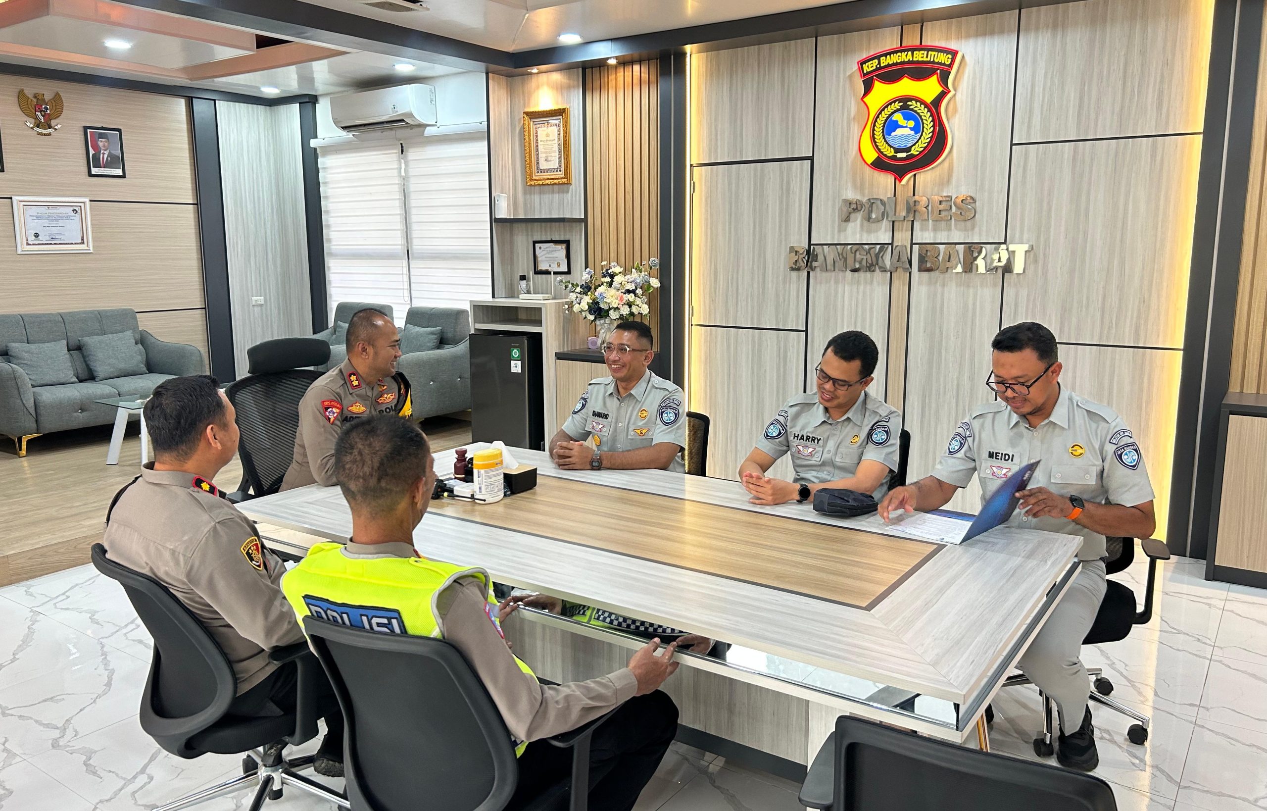 Kapolres Bangka Barat AKBP Pradana Aditya Nugraha menerima kunjungan kerja dan silaturahmi dari PT Jasa Raharja Kantor Wilayah Kepulauan Bangka Belitung, Selasa (17/3/2026).