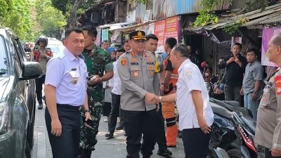 SIDIKPOLISINEWS.ID, Jakarta Utara –  Kapolres Metro Jakarta Utara, Kombes Pol. Erick Frendriz, S.I.K., M.Si, bersama jajaran Forum Koordinasi Pimpinan Kota (Forkopimko) Jakarta Utara meninjau lokasi kebakaran di Jl. Pademangan V, Gg 27 ‎RT 07 RW 01,Kelurahan Pademangan Timur, Kecamatan Pademangan, Jakarta Utara, Rabu (15/10/2025) siang.