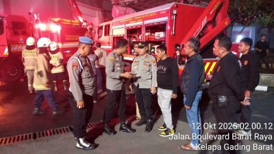 Kapolsek Kelapa Gading Kompol Seto Handoko Putra, S.I.Kom., S.I.K. bersama pawas dan piket fungsi segera menuju lokasi begitu menerima laporan kebakaran sekitar pukul 00.20 WIB.