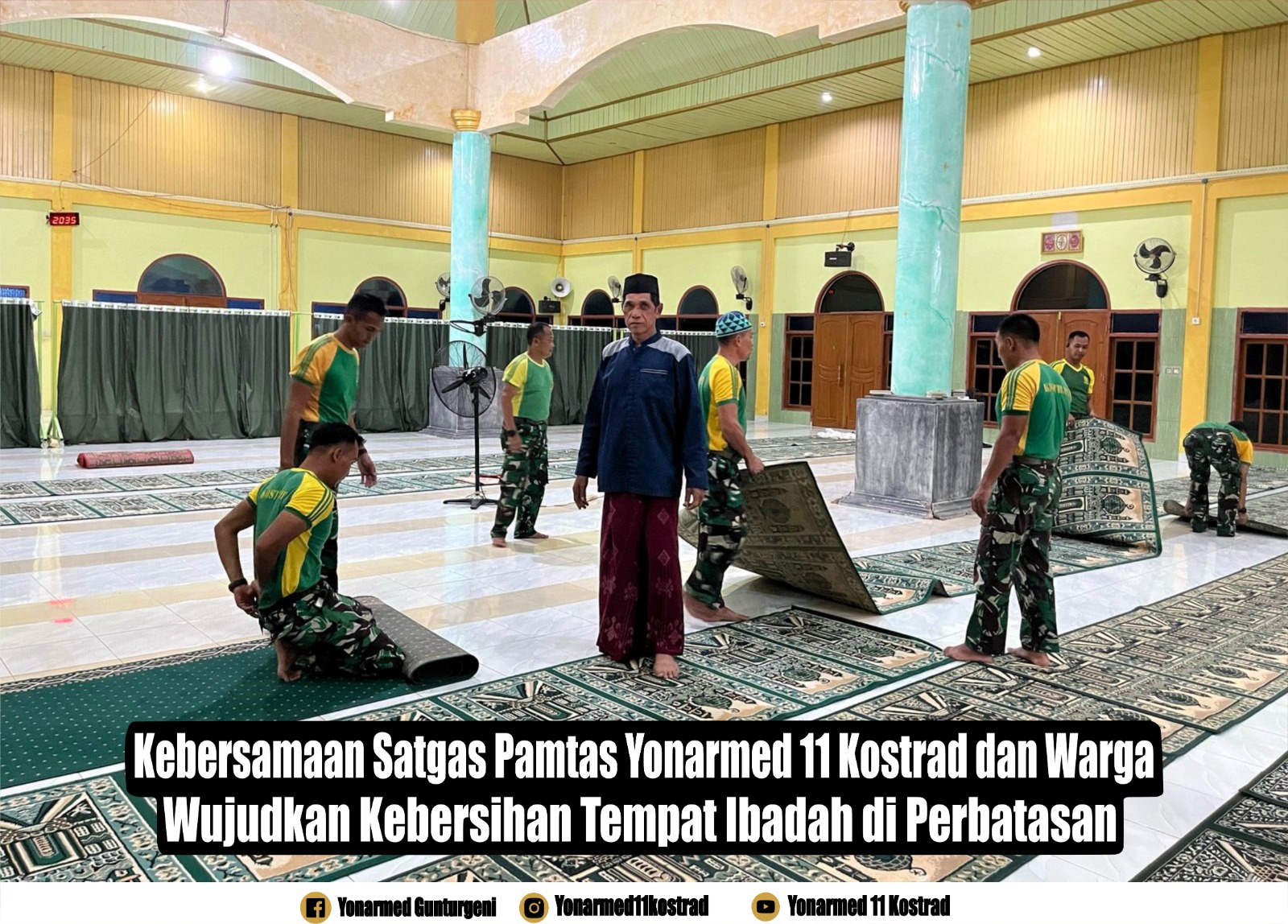 Komandan Satgas Pamtas Yonarmed 11 Kostrad, Letkol Arm Gde Adhy Surya Mahendra, menyampaikan bahwa kegiatan ini merupakan bentuk kepedulian terhadap fasilitas ibadah serta untuk menjaga kebersihan lingkungan sekitar.
