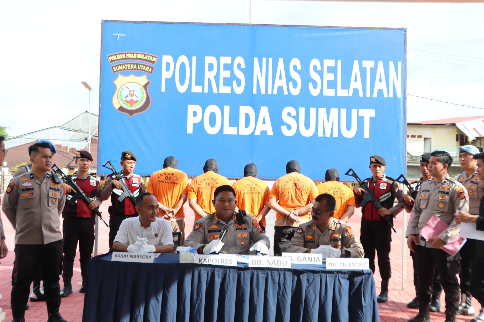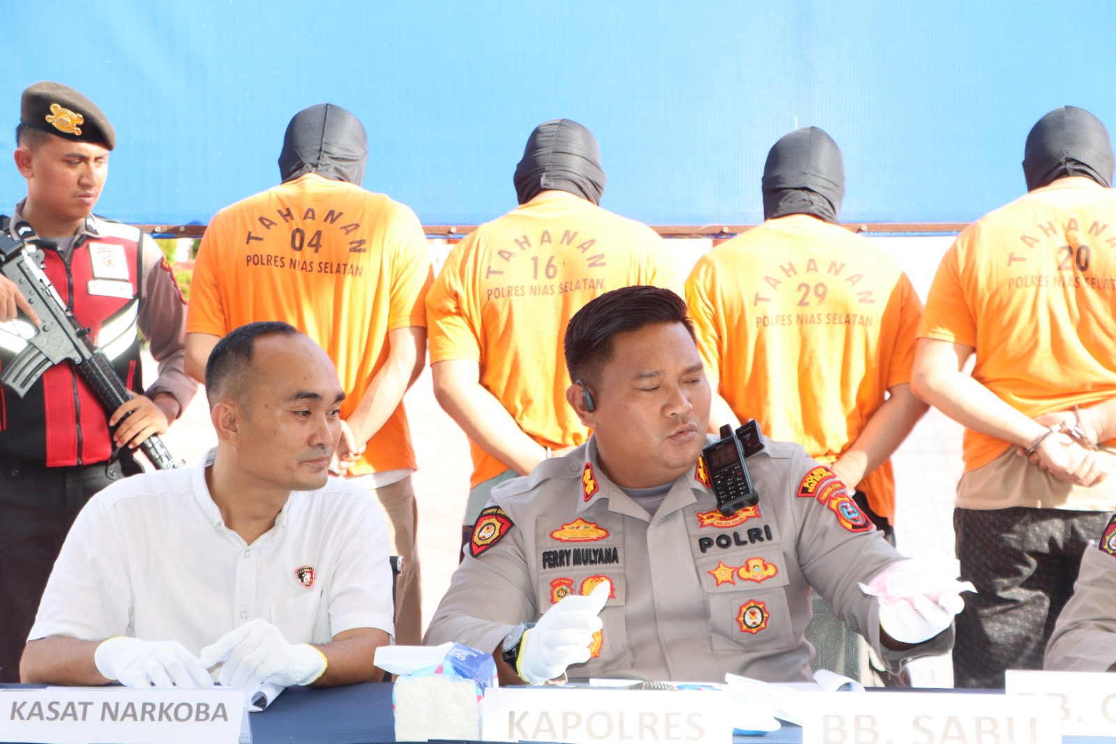 Kapolres Nias Selatan, AKBP FERRY MULYANA SUNARYA, S.I.K., bersama dengan personil polres Nias Selatan, menyampaikan bahwa pengungkapan kasus narkotika di wilayah Nias Selatan akan terus digencarkan dan pengungkapan sejauh ini bukan akhir dari segalanya, melainkan awal dari giat pemberantasan narkotika di wilayah Kabupaten Nias Selatan. Polres Nias Selatan akan tetap berkomitmen untuk melakukan penangkapan terhadap individu yang terlibat dalam peredaran narkoba, termasuk pengedar sabu, ganja, dan ekstasi di wilayah Kabupaten Nias Selatan