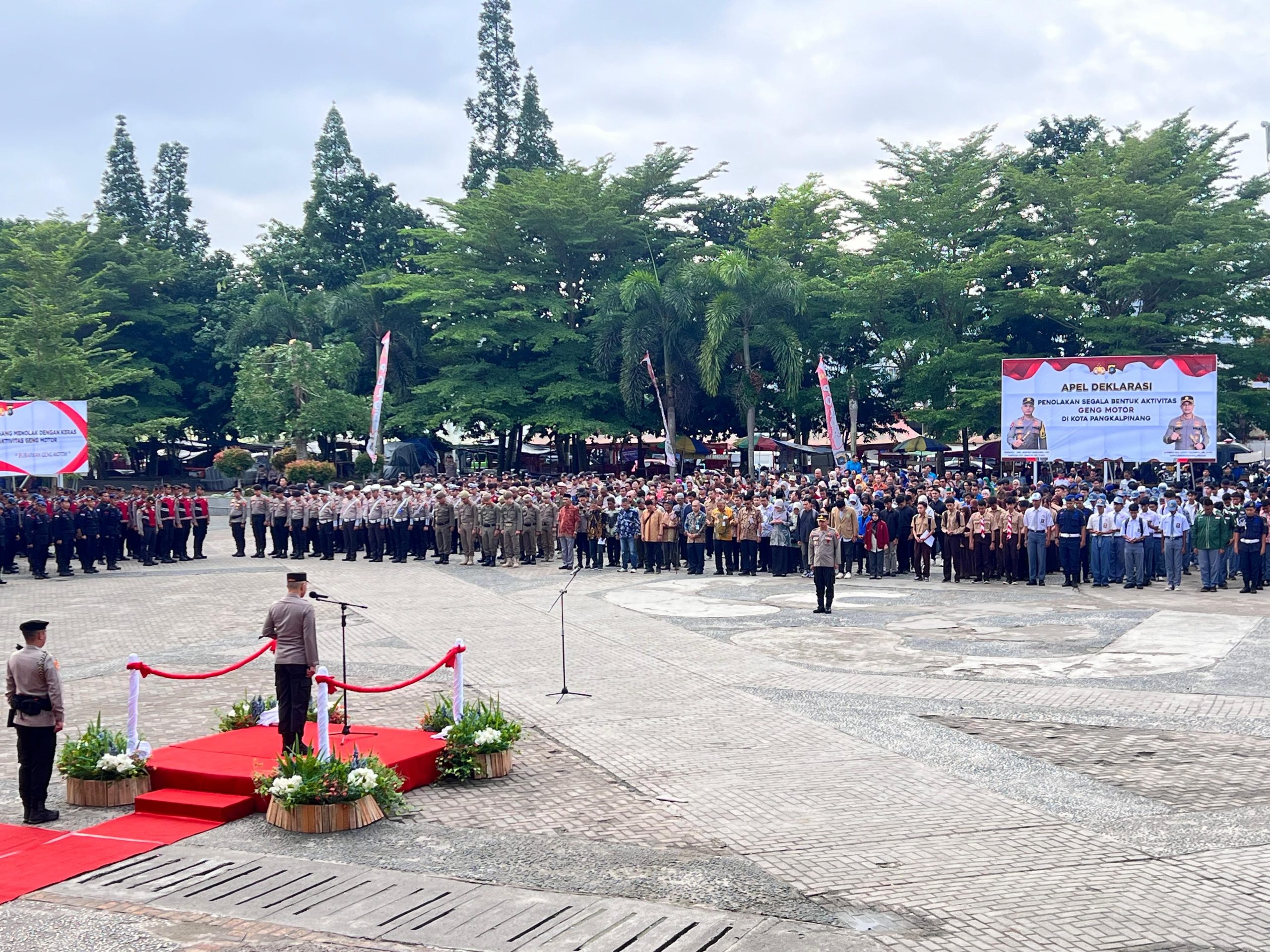 Dalam apel tersebut, seluruhnya secara serentak berkomitmen menyampaikan deklarasi penolakan segala aktivitas geng motor yang ada di Kota Pangkalpinang ini.