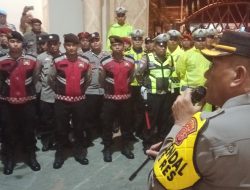 Kapolres Aceh Barat, AKBP Yhogi Hadisetiawan, S.I.K., M.I.K., memimpin langsung pengecekan personel guna menjamin kelancaran arus lalu lintas dan ketertiban masyarakat selama prosesi takbir keliling berlangsung di pusat kota Meulaboh.