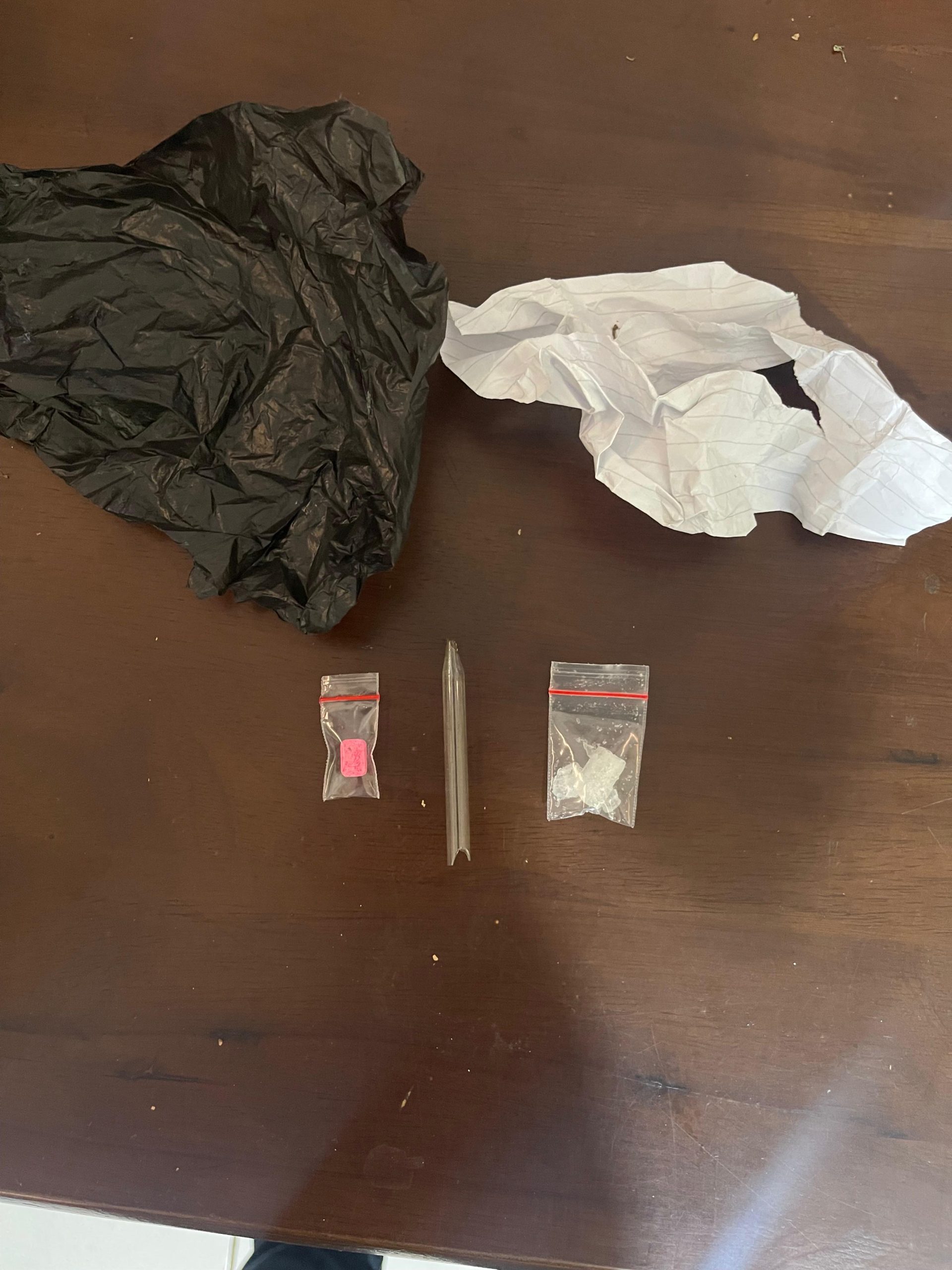 Setibanya di lokasi, petugas melakukan pengintaian dan menemukan seorang laki-laki dengan ciri yang sesuai informasi masyarakat. Tim kemudian melakukan penangkapan dan penggeledahan terhadap pelaku. Dari tangan tersangka, polisi menyita sejumlah barang bukti berupa, Satu plastik bening kecil berisi diduga sabu-sabu, Satu butir diduga ekstasi warna pink, Satu buah kaca pirex, Satu unit handphone OPPO warna biru.