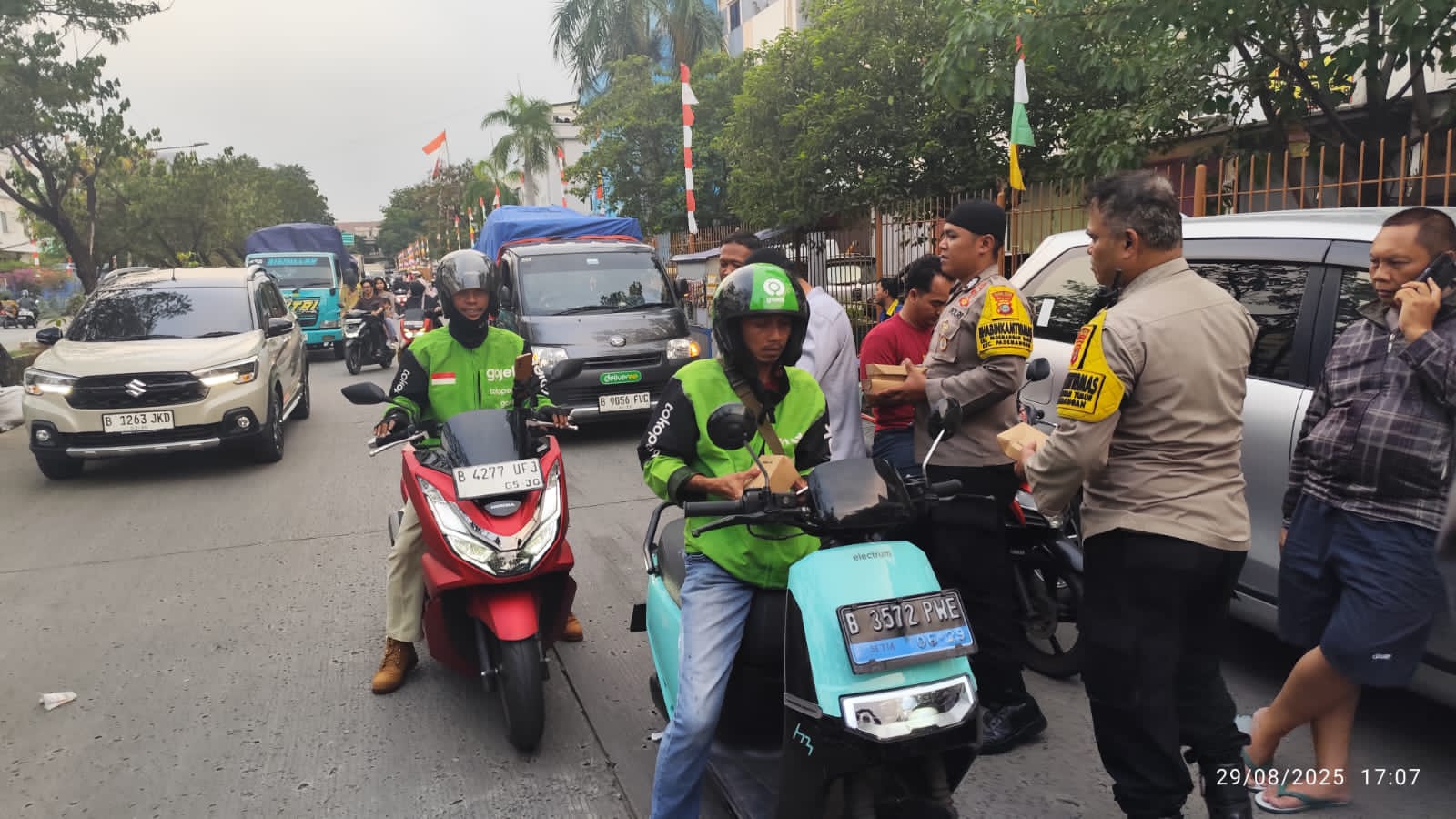 SIDIKPOLISINEWS.ID, Jakarta Utara – Polsek Pademangan kembali menggelar kegiatan sosial bertajuk “Jumat Berkah” dengan membagikan 25 kotak nasi kepada warga kurang mampu dan pengemudi ojek online, Jumat (29/8/2025) sore. Aksi berbagi ini berlangsung di depan Ruko Permata Ancol, Jalan Budi Mulia, Kelurahan Pademangan Barat, Kecamatan Pademangan, Jakarta Utara.