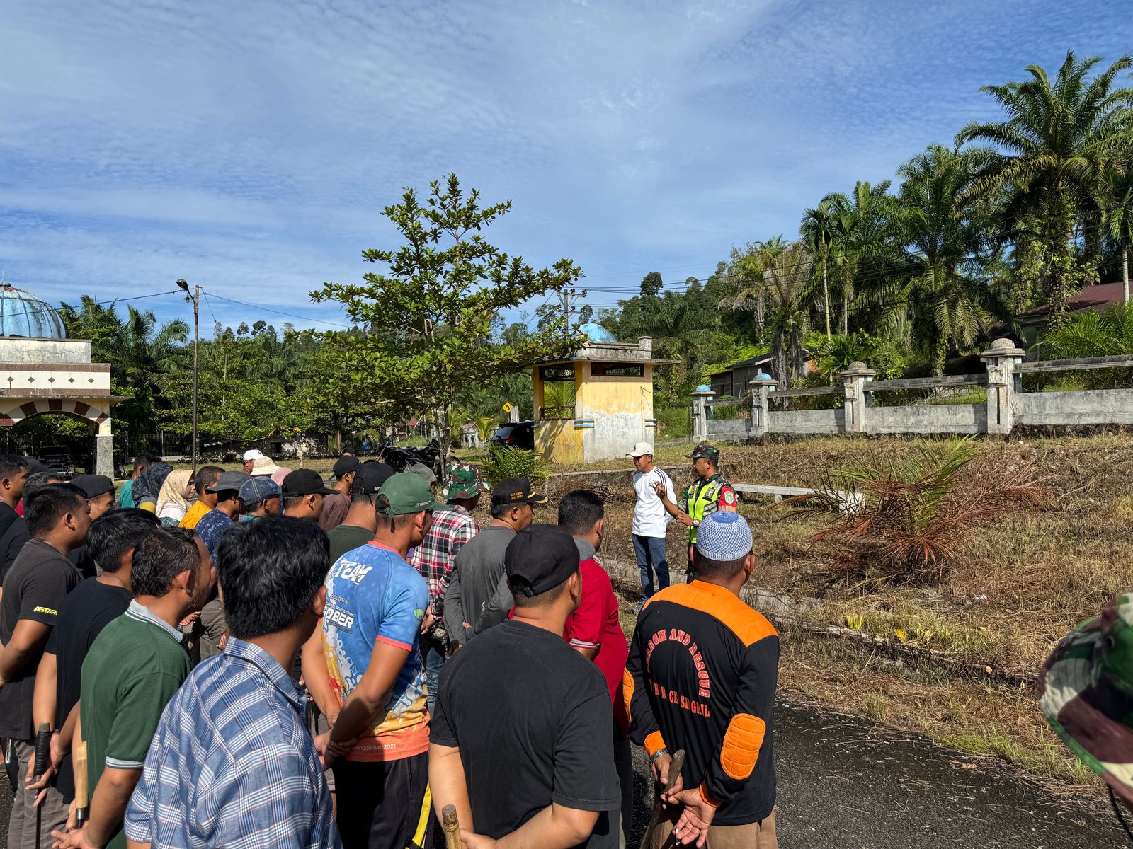 Camat suro makmur Ganda Bancin Bersama jajaran muspikan dan Kapolsek seluruh kepala desa juga turut mengikuti gotong royong pembersihan areal Islamic senter