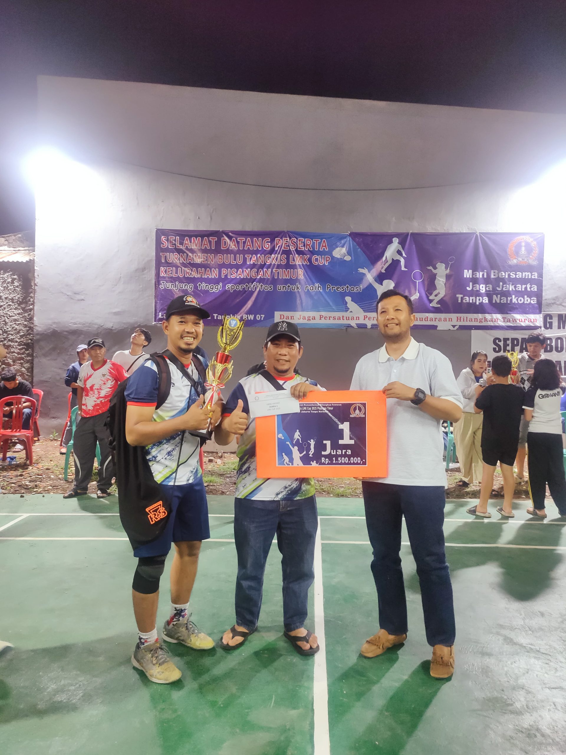 SIDIKPOLISINEWS.ID -Jakarta, Malam Grand final Turnamen Badminton LMK CUP 2025 pada Sabtu malam, 15 November 2025, pukul 20.00 WIB di Lapangan Bulutangkis RW 07, Kelurahan Pisangan Timur. Acara penutupan yang sekaligus menjadi malam grand final ini berlangsung meriah dan disambut antusias oleh warga setempat.