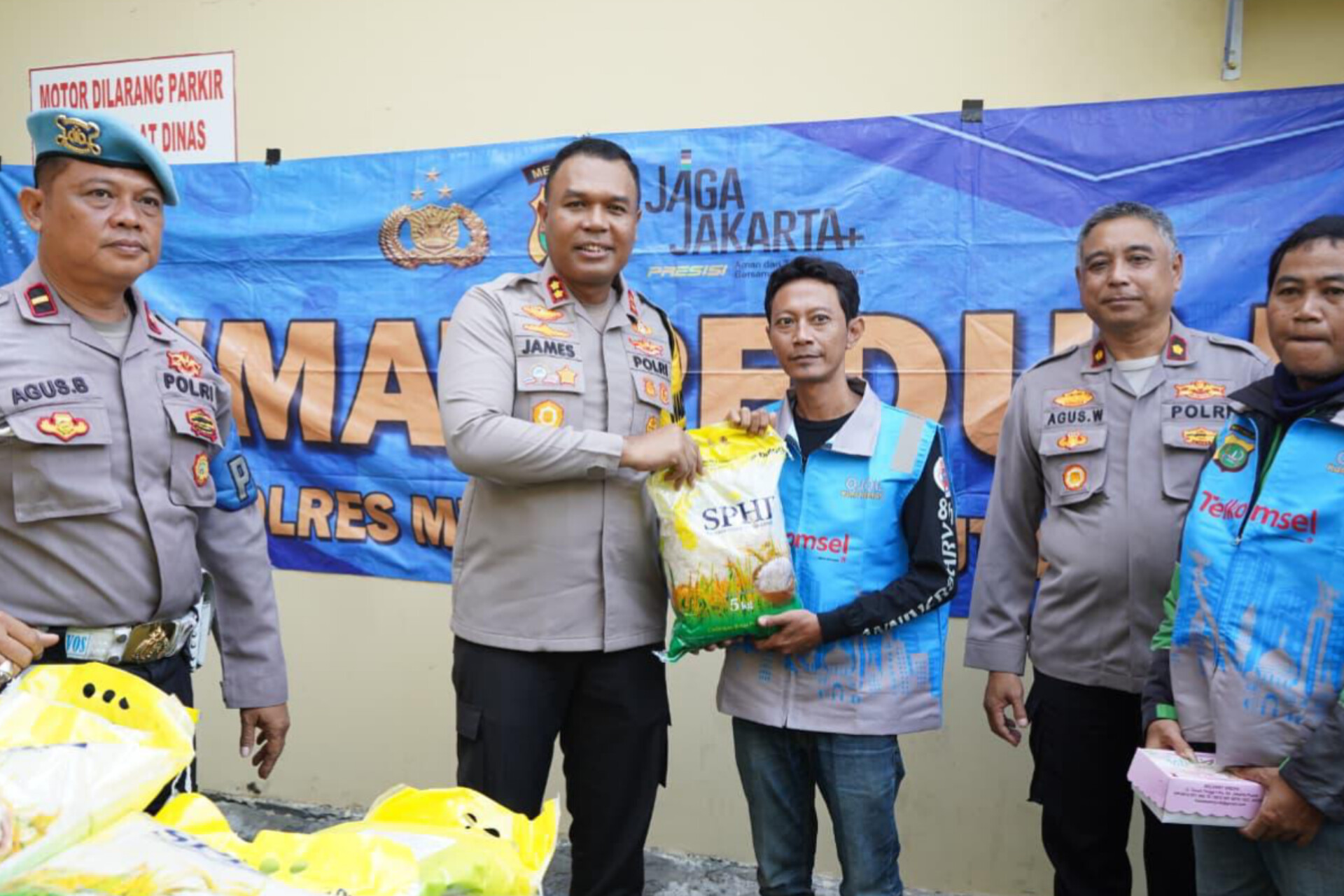 Kegiatan dimulai sekitar pukul 09.00 WIB dengan pembagian 50 paket beras SPHP berukuran 5 kilogram, yang diserahkan langsung kepada para pengemudi ojek online. Selain bantuan pangan, petugas kesehatan dari Seksi Dokkes Polres Metro Jakarta Utara juga melakukan pemeriksaan kesehatan bagi para penerima manfaat.